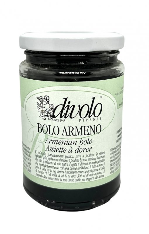 Le bol d'Arménie est une argile colorée, très raffinée et fine qui est utilisée comme surface immédiate sur laquelle la feuille d'or est placée. La nature douce et souple du bole arménien permet également le brunissage de la feuille d'or jusqu'à ce qu'elle soit très brillante avec une pierre d'agate. Le bole d'Arménie ne contient pas de colle, il est donc nécessaire de préparer une solution de colle de lapin (1 litre de colle à 8-10% pour environ 300 ml de bole d'Arménie) pour l'application. Le mélange doit être étalé en fine couche sur la surface à dorer.
