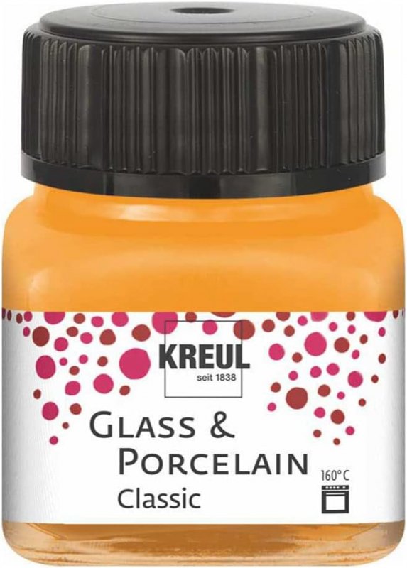 Het ondoorzichtige Kreul Glass & Porcelain Classic is de eerste kleurkeuze voor doe-het-zelf projecten omdat het kleurenpalet divers is en de glanzende en metallic kleurschakeringen doen denken aan geglazuurd keramiek. Glamoureus goud, goudbrons of champagne glinsteren al in hun oorspronkelijke staat en geven glazen, kopjes en borden een metallic glans. Kreul Glass & Porcelain Chalky, Classic en Clear zijn verven voor het kleuren en ontwerpen van hittebestendig glas, porselein, keramische recipiënten, terracotta en metaal. Ze worden ingebrand op 160 °C en zijn dan watervast, vaatwasmachinebestendig en speekselbestendig. Als oudste Duitse kunstschildersverffabriek vertrouwen we op ervaring en willen we duurzame voorwaarden voor de toekomst creëren. Daarom bestaan de Kreul Glass & Porcelain Chalky, Classic en Clear voor minstens 60% uit duurzame grondstoffen van natuurlijke oorsprong.