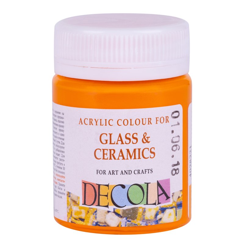 Farby akrylowe do szkła i ceramiki. Przed użyciem farbę należy dokładnie wymieszać, a następnie nanieść pędzlem na wcześniej odtłuszczoną dekorowaną powierzchnię. Jeżeli chcemy położyć więcej niż jedną warstwę farby, to należy nakładać je w odstępie 12 h. Po zakończeniu pracy, pomalowany przedmiot suszymy 3 dni. W celu uzyskania transparentności farby, możemy użyć specjalnego rozcieńczalnika Decola. Dla zwiększenia trwałości dekoracji, ozdabiany przedmiot możemy wypalić w piekarniku w temperaturze 100℃ przez 30 min.