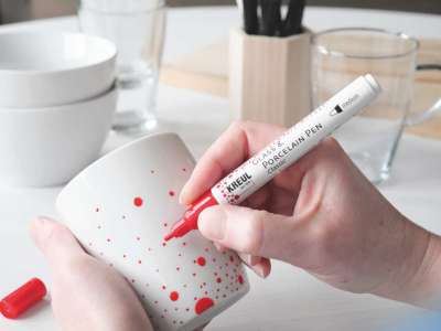 Dzięki pisakom Kreul Glass & Porcelain Pens Classic kreatywni mogą pisać, rysować i malować na kubkach, szklankach, talerzach, wazonach, miskach na płatki śniadaniowe i innych. Wspaniałe, błyszczące farby do szkła i porcelany w pisaku są na bazie wody i są idealne do dekoracyjnych wzorów na szkle, porcelanie, ceramice, metalu, akrylu i lustrach. W połączeniu z Kreul Glass & Porcelain Classic w buteleczkach o pojemności 20 ml, dekorowane przedmioty zyskują nowy blask. Pomalowany przedmiot wykonany z materiału odpornego na wysoką temperaturę jest umieszczany w zimnym piekarniku w celu utrwalenia. Po osiągnięciu temperatury 160°C należy piec pomalowany przedmiot przez 90 minut.