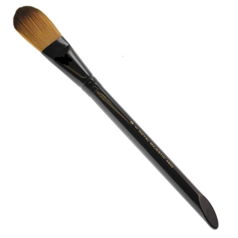 Pędzle Majestic to wysokiej jakości pędzle artystyczne, wykonane z najwyższej jakości włókien syntetycznych (złoty taklon). Włosie w tych pędzlach to mix włókien syntetycznych o 3 różnych średnicach grubości. Włókna taklonu umocowane są w bezszwowych niklowych skuwkach, osadzonych na czarnych akrylowych obsadkach. Akrylowa obsadka, gwarantuje, że nie będzie pękać, pęcznieć, odpryskiwać i jak to się czasami dzieje z obsadkami drewnianymi. Rodzaj taklonu użytego w pędzlach majestic, szczególnie predysponuje je do farb akwarelowych, akrylowych i innych farb na bazie wody. Długość pędzla ok. 20 - 22 cm. Pakowane po 3 sztuki.